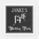 Ce design élégant et élégant sur le thème de l'anniversaire de la serviette en papier comporte un nom personnalisé et le message "14th Birthday Party". Le grand numéro "14th" et les mots "Birthday Party" sont dans un texte élaboré de style script, et l'arrière - plan est coloré en noir par défaut (bien qu'il puisse être customisé). De luxueuses serviettes en papier ornées comme celle-ci pourraient être utilisées lors d’une fête d’anniversaire ou d’une fête organisée pour célébrer le quatorzième anniversaire de quelqu’un. [~Z0000563]