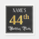 Cette conception élégante et sophistiquée de serviette en papier à thème d'anniversaire comporte un nom modifiable et le message "44th Birthday Party". Le grand numéro "44th" a un motif de coloriage d'inspiration fausse/imitation or, les mots "Birthday Party" sont dans un texte opulent de style script, et l'arrière - plan est coloré noir par défaut (bien qu'il puisse être customisé). Des serviettes en papier, comme celle-ci, peuvent être utilisées lors d’une fête d’anniversaire pour célébrer le quarante-quatrième anniversaire de quelqu’un. [~Z0000565]