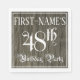 Ce design élaboré et luxueux de serviette en papier sur le thème de la fête d'anniversaire comporte un nom personnalisé et le message "48th Birthday Party". Le grand numéro "48e" et les mots "fête d'anniversaire" sont dans un texte orné de style script. L'arrière - plan a un motif imitation/imitation à grains de bois. Des serviettes en papier élégantes et sophistiquées comme celle-ci pourraient être utilisées lors d’une célébration d’anniversaire pour célébrer le quarante-huitième anniversaire de quelqu’un. [~Z0000564]