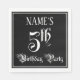 Cette conception élaborée et élégante de serviette en papier à thème d'anniversaire comporte un nom personnalisé et le message "5th Birthday Party". Le grand numéro "5th" et les mots "Birthday Party" sont dans un texte de style script sophistiqué, et l'arrière - plan est coloré en noir par défaut (bien qu'il puisse être customisé). Des serviettes en papier aussi sophistiquées et opulentes pourraient être utilisées lors d’une fête d’anniversaire ou d’une célébration pour célébrer le cinquième anniversaire de quelqu’un. [~Z0000563]