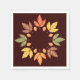 Feuilles d'érable jaune, orange, brun et vert disposés en cercle sur un arrière - plan marron profond.