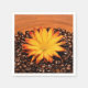 Serviettes avec une photo de beaucoup de fèves de café aux tons chauds avec une marguerite jaune teintée d'orange sur un arrière - plan en bois.