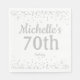 Elégant et moderne blanc avec parties scintillant argent de femme 70ème anniversaire de fête serviettes de papier personnalisées avec un nom et un âge. Tout le texte est personnalisable.