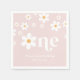 Un ! Serviettes de fête d'1er anniversaire d'inspiration rétro avec marguerites style années 70 et polices et couleurs boho.