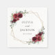 Ajoutez une touche personnelle à votre fête mariage avec ces objets de fête élégants et mémorables ! Le design présente des fleurs d'aquarelle bordeaux, de la verdure et un cadre doré sur un arrière - plan blanc.