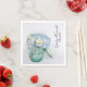 L'élégante Blue Hydrangea Flowers in Jar Vase Papier Mariage Napkins peut être personnalisée avec les noms de la mariée et du marié et date à utiliser à votre jardin fête nuptiale douche ou mariage sommelier cocktail et réception. Ces serviettes en papier jetables à fleurs et chic rustiques sont ornées d'une photographie florale d'une charrette en verre bleu remplie de fleurs d'hydrangée bleu clair et d'un voile de mariée blanc.