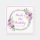 Belle serviette de fête d'anniversaire avec un cadre en faux parties scintillant violet et argent avec des arrangements floraux. Les mots peuvent être changés en fonction de vos propres détails ou exigences