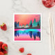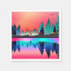 Illustration de cerfs dans une forêt de montagne aux couleurs de l'aurore boréale sous les étoiles du soir.
