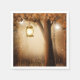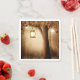 Serviettes en papier avec une illustration fantaisiste et fantaisiste dans des couleurs brun et jaune riches. Une forêt mystique magique avec un grand arbre tenant une lanterne à l'ancienne. Des lumières des fées dansent tout autour. Un design merveilleux et enchanteur.