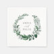 Conçues pour correspondre à notre collection de mariages de la forêt sauvage, ces serviettes botaniques chics portent vos noms encerclés par une couronne de feuillage d'aquarelle d'hiver dans des tons frais de vert chasseur.