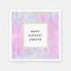 Serviettes en papier d'anniversaire avec un motif arrière - plan abstrait. Les aquarelles rose violet et bleu composent ce design artistique qui présente des formes verticales rectangle sur un arrière - plan doux et marbré. Un carré superposé avec une fausse bordure en feuille d'or, votre texte personnalisé à l'intérieur.