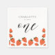 Illustrations mignonnes fraises, serviettes en papier de 1er anniversaire. Caractéristiques, fraises illustrées en rouge bordé et joli script graphique "un".