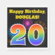 Ce design amusant et vibrant de serviette en papier présente un motif coloré inspiré par les feux d'artifice célébré, ainsi que le numéro "20" avec un arc-en-ciel multicolore comme un motif dégradé, sur un arrière - plan de couleur noire. Il comporte également un nom et un message d'événement personnalisés. Des serviettes en papier comme celle-ci peuvent être utilisées lors d’une fête d’anniversaire pour célébrer le vingtième anniversaire de quelqu’un. [~Z0000326]