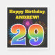 Ce design amusant et vibrant de serviette en papier présente un motif coloré inspiré par les feux d'artifice célébré, ainsi que le numéro "29" avec un motif multicolore en dégradé d'inspiration arc-en-ciel, sur un arrière - plan de couleur noire. Il comporte également un nom et un message d'événement personnalisés. Des serviettes en papier comme celle-ci peuvent être utilisées lors d’une fête d’anniversaire pour célébrer le vingt-neuvième anniversaire de quelqu’un. [~Z0000326]