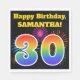 Ce design amusant et dynamique de serviette en papier présente un motif coloré inspiré par les feux d'artifice, ainsi que le numéro "30" avec un arc-en-ciel multicolore comme un motif dégradé, sur un arrière - plan de couleur noire. Il comporte également un nom et un message d'événement personnalisés. Des serviettes en papier comme celle-ci pourraient peut-être être utilisées lors d’une fête organisée pour célébrer le trentième anniversaire de quelqu’un. [~Z0000326]