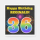 Ce design amusant et vibrant de serviette en papier présente un motif coloré inspiré par les feux d'artifice célébré, ainsi que le numéro "36" avec un arc-en-ciel multicolore comme un motif dégradé, sur un arrière - plan de couleur noire. Il comporte également un nom et un message d'événement personnalisés. Des serviettes en papier comme celle-ci pourraient être utilisées lors d’une fête organisée pour célébrer le trente-sixième anniversaire de quelqu’un. [~Z0000326]