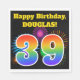 Ce design amusant et dynamique de serviette en papier présente un motif coloré inspiré par les feux d'artifice, ainsi que le numéro "39" avec un motif multicolore en dégradé d'inspiration arc-en-ciel, sur un arrière - plan de couleur noire. Il comporte également un nom et un message d'événement personnalisables. Des serviettes en papier comme celle-ci pourraient être utilisées lors d’une fête organisée pour célébrer le trente-neuvième anniversaire de quelqu’un. [~Z0000326]