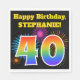 Ce design amusant et dynamique de serviette en papier présente un motif coloré inspiré par les feux d'artifice célébré, ainsi que le numéro "40" avec un motif dégradé multicolore inspiré arc-en-ciel, sur un arrière - plan de couleur noire. Il comporte également un nom et un message d'événement personnalisés. Des serviettes en papier comme celle-ci pourraient peut-être être utilisées lors d’une fête organisée pour célébrer le quarantième anniversaire de quelqu’un. [~Z0000326]