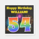 Ce design amusant et dynamique de serviette en papier présente un motif coloré inspiré par les feux d'artifice célèbres, ainsi que le numéro "54" avec un motif multicolore en dégradé d'inspiration arc-en-ciel, sur un arrière - plan de couleur noire. Il comporte également un nom et un message d'événement personnalisables. Des serviettes en papier comme celle-ci pourraient être utilisées lors d’une fête organisée pour célébrer le cinquante-quatrième anniversaire de quelqu’un. [~Z0000326]