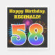 Ce design amusant et vibrant de serviette en papier présente un motif coloré inspiré par les feux d'artifice célébré, ainsi que le numéro "58" avec un arc-en-ciel multicolore comme un motif dégradé, sur un arrière - plan de couleur noire. Il comporte également un nom et un message d'événement personnalisables. Des serviettes en papier comme celle-ci pourraient peut-être être utilisées lors d’une fête organisée pour célébrer le cinquante-huitième anniversaire de quelqu’un. [~Z0000326]