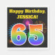 Ce design amusant et dynamique de serviette en papier présente un motif coloré inspiré par les feux d'artifice, ainsi que le numéro "65" avec un motif multicolore en dégradé d'inspiration arc-en-ciel, sur un arrière - plan de couleur noire. Il comporte également un nom et un message d'événement personnalisés. Des serviettes en papier comme celle-ci pourraient être utilisées lors d’une fête d’anniversaire pour célébrer le soixante-cinquième anniversaire de quelqu’un. [~Z0000326]