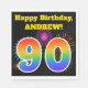 Ce design amusant et dynamique de serviette en papier présente un motif coloré inspiré par les feux d'artifice célébré, ainsi que le numéro "90" avec un arc-en-ciel multicolore comme un motif dégradé, sur un arrière - plan de couleur noire. Il comporte également un nom et un message d'événement personnalisés. Des serviettes en papier comme celle-ci peuvent être utilisées lors d’une fête d’anniversaire pour célébrer le quatre-vingt-dixième anniversaire de quelqu’un. [~Z0000326]