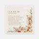 Ajoutez une touche de fantaisie à votre célébration avec nos serviettes de Mariage Floral chic en terre cuite moderne Fun Fun Facts. Dotés d'une calligraphie élégante et d'un design fleur sauvage dynamique dans des tons terre cuite et orange brûlé, ces serviettes sont parfaites pour des douches nuptiales, des dîners de répétition et des fêtes de mariage. Chaque serviette contient des informations charmantes et amusantes sur le couple, créant une délicieuse entrée de conversation pour vos invités. Idéales pour les thèmes rustiques, boho chic ou minimalistes, ces serviettes complètent n'importe quel décor. Faites de votre journée spéciale une journée inoubliable avec ces serviettes mariages uniques et personnalisées qui reflètent votre histoire d'amour.
