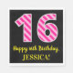 Ce design amusant sur le thème de l'anniversaire de papier serviette dispose d'un grand nombre "16", avec un motif de rayures rose foncé et rose clair. Il comporte également le message "Joyeux 16e anniversaire", et un nom personnalisé. L'arrière - plan est noir de couleur. Des serviettes en papier sur le thème de l'anniversaire comme celle-ci pourraient être amusantes à utiliser lors d'une célébration organisée pour honorer quelqu'un qui célèbre son seizième anniversaire. [~Z0000380]