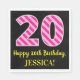 Cette conception amusante de serviette en papier sur le thème de l'anniversaire comporte un grand nombre de "20" avec un motif rose foncé et rose clair rayures, avec le message "Joyeux 20e anniversaire", et un nom personnalisé. L'arrière - plan est noir de couleur. Des serviettes en papier personnalisées et amusantes comme celle-ci pourraient être utilisées lors d’une fête d’anniversaire qui se tient en l’honneur du vingtième anniversaire de quelqu’un. [~Z0000380]