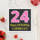 Ce design amusant sur le thème de l'anniversaire de papier serviette dispose d'un grand nombre "24", avec un motif de rayures rose foncé et rose clair. Il comporte également le message "Joyeux 24e anniversaire", et un nom personnalisé. L'arrière - plan est noir de couleur. Des serviettes en papier sur le thème de l’anniversaire comme celle-ci pourraient être amusantes à utiliser lors d’une fête organisée pour célébrer le vingt-quatrième anniversaire de quelqu’un. [~Z0000380]