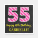 Ce design amusant sur le thème de l'anniversaire de la serviette en papier dispose d'un grand nombre de "55", avec un motif de rayures rose clair et rose foncé. Il comporte également le message "Joyeux 55e anniversaire", et un nom modifiable. L'arrière - plan est noir de couleur. Des serviettes en papier personnalisables et amusantes, comme celle-ci, pourraient être utilisées à la fête du 55e anniversaire de quelqu’un. [~Z0000380]