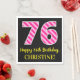 Ce design amusant sur le thème de l'anniversaire de la serviette en papier dispose d'un grand numéro "76", avec un motif de rayures rose clair et rose foncé. Il comporte également le message "Joyeux 76ème anniversaire", et un nom modifiable. L'arrière - plan est noir de couleur. Des serviettes en papier customisées et amusantes comme celle-ci pourraient être utilisées lors d’une fête d’anniversaire pour célébrer le 76e anniversaire de quelqu’un. [~Z0000380]