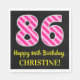 Ce design amusant de serviette en papier sur le thème de l'anniversaire comporte un grand nombre de "86", avec un motif de rayures rose clair et rose foncé. Il comporte également le message "Joyeux 86e anniversaire", et un nom personnalisable. L'arrière - plan est noir de couleur. Des serviettes en papier sur le thème de l’anniversaire comme celle-ci pourraient être amusantes à utiliser lors d’une fête organisée pour célébrer le 86e anniversaire de quelqu’un. [~Z0000380]