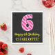 Cette conception amusante de serviette en papier sur le thème de l'anniversaire comporte un grand nombre "6" avec un motif rose foncé et rose clair rayures, avec le message "Joyeux 6e anniversaire", et un nom personnalisable. L'arrière - plan est noir de couleur. Des serviettes en papier customisées et amusantes comme celle-ci pourraient être utilisées lors d’une célébration d’anniversaire en l’honneur du 6e anniversaire de quelqu’un. [~Z0000380]