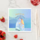 Cette jolie serviette de table de fête présente une ambiance de surf de plage avec des bleus côtiers, et peut être personnalisée avec le nom de votre enfant pour sa journée spéciale.