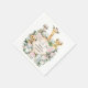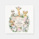 Une jolie serviette de fête à thème safari avec d'adorables animaux de la jungle, de jolies fleurs roses et une végétation botanique rustique. Personnalisez le libellé pour votre événement, c'est-à-dire le baby shower, l'arrosage de bébé, l'anniversaire, le baptême, le baptême, le baptême, la communion sainte, etc.