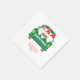 Serviettes personnalisées de fête de Noël avec trois adorables gnomes dans un camion vert. Personnalisé avec votre nom et l'année