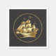 Un superbe voilier doré de haute qualité sur un arrière - plan noir contrasté fait un merveilleux choix de serviette de soirée pour les amateurs de voile ou de navigation de plaisance. Ajoutez votre propre texte personnalisé pour personnaliser votre événement ou votre usage personnel.