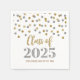Serviettes de graduation personnalisables pour classe de 2025 avec motif glamour or et argent confetti.