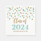 Serviettes de graduation personnalisables pour classe de 2024 avec l'or glamour et motif confetti turquoise.