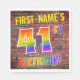 La façade de cette serviette en papier captivante, excitante et amusante sur le thème de l'anniversaire est dotée d'un nom personnalisable, et le message "41E ANNIVERSAIRE !" avec des lettres ayant un motif dégradé multicolore inspiré du spectre arc-en-ciel, sur un arrière - plan motif inspiré par un mur de briques. Le style s'inspire de celui des graffitis ou de l'art de rue dessinés sur un mur. Des serviettes en papier amusantes comme celle-ci pourraient être utilisées à une fête d'anniversaire pour quelqu'un qui célèbre son quarante et unième anniversaire. [~Z0000367]