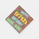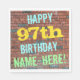 Cette conception amusante de serviette en papier sur le thème de l'anniversaire comporte un message comme "HAPPY 97th BIRTHDAY, NAME-HERE!", où le nom peut être personnalisé. L'arrière - plan est représenté par un mur en brique composé de briques de couleur rougeâtre. Le texte du message personnalisable comporte des couleurs comme le bleu, le jaune et le vert, et il a un aspect inspiré de celui des graffitis peints. Des serviettes comme celles-ci pourraient peut-être être utilisées à une fête d'anniversaire pour quelqu'un qui célèbre son quatre-vingt-dix-septième anniversaire. [~Z0000271]