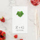 Les élégantes serviettes en papier Mariage blanc blanc peuvent être personnalisées avec les noms ou initiales de la mariée et du marié et la date à utiliser à votre jardin fête nuptiale douche ou mariage cocktail et réception. Ces serviettes jetables personnalisées et élégantes sont équipées d'une photographie de nature rapprochée de feuilles de lierre anglais vert sur un arrière - plan blanc.