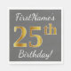 Serviette En Papier Grey, Faux Gold 25e anniversaire + Nom personnalis