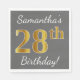 Ce design simple de serviette en papier comporte un message comme "28e anniversaire de Samantha !", avec le "28e" ayant un aspect faux/imitation or, sur un arrière - plan gris (gris). Le nom peut être customisé. Il pourrait être utilisé à une fête d'anniversaire pour quelqu'un qui célèbre son vingt-huitième anniversaire. [~Z0000190]
