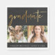 Une serviette moderne et chic pour la fête de graduation avec une typographie de script de l'or faux, deux photos, nom et année de classe en texte blanc sur une serviette blanche arrière - plan noir.