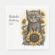 Cute gray tabby chat/chaton avec tournesol serviettes en papier d'anniversaire personnalisées avec le nom de l'invitée d'honneur et sa date de fête. Contactez-moi pour obtenir de l'aide sur votre personnalisation ou pour demander d'autres produits d'appariement ou de coordination pour votre célébration.