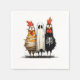 Une illustration d'Halloween drôle et hilarante avec trois poulets en costumes éffrayants — une momie, un fantôme et un squelette ! Parfait pour ajouter un peu d'humour et de charme à votre décor d'Halloween, invitations ou fournitures de fête. Amusant, déplaisant et cluckin’ génial! 🐔 👻 🎃