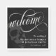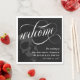 Élégant mariage d'Halloween foncé ou goth serviettes de bienvenue avec l'accueil écrit dans un script tourbillonnant de calligraphie blanche. Ajoutez vos noms et votre date de mariage contre un arrière - plan noir avec un crâne gris. Ajoutez une touche de romance sombre à votre mariage goth avec ces élégantes serviettes de déjeuner ! Ces serviettes noires, blanches et grises présentent un script de calligraphie tourbillonnant et un crâne, parfait pour votre mariage goth unique et élégant. Vos invités apprécieront le design sophistiqué mais sur le thème de ces serviettes.
