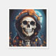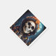 Des serviettes en papier avec l'illustration d'un squelette portant une veste à capuchon avec un casquette de sorcière orange au-dessus. Une lune brillante dans le dos avec une seule chauve-souris volant à proximité. Fun automne design Halloween.